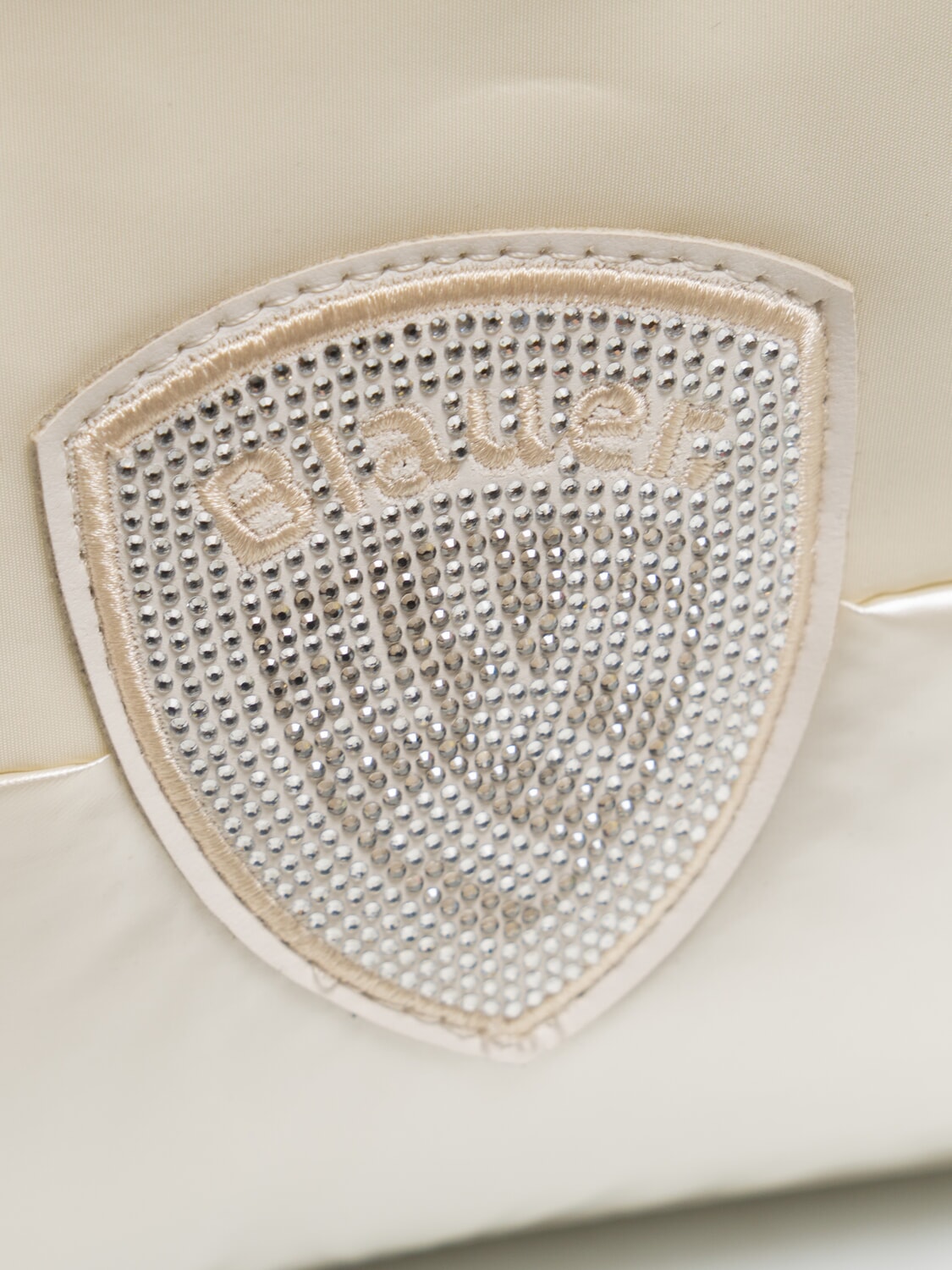 PADDED NYLON Bolso de mano suave con logotipo de diamantes de imitación