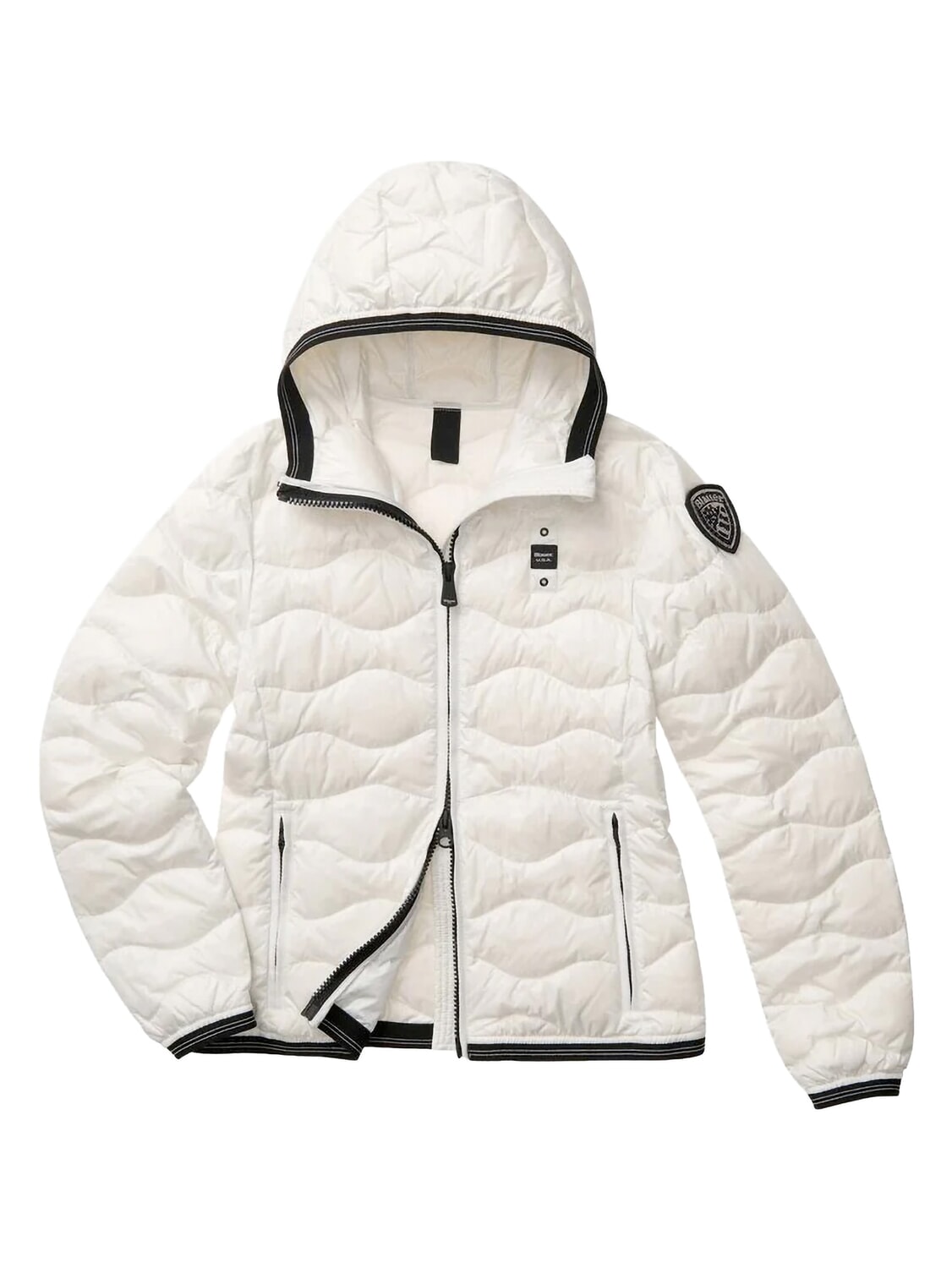 WAVE Chaqueta corta acolchada de plumas con capucha.