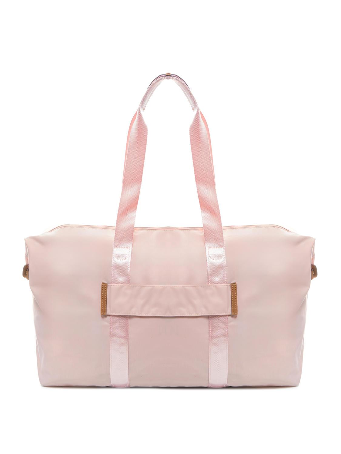 - Bolsa de viaje plegable de nylon con ribete de piel.