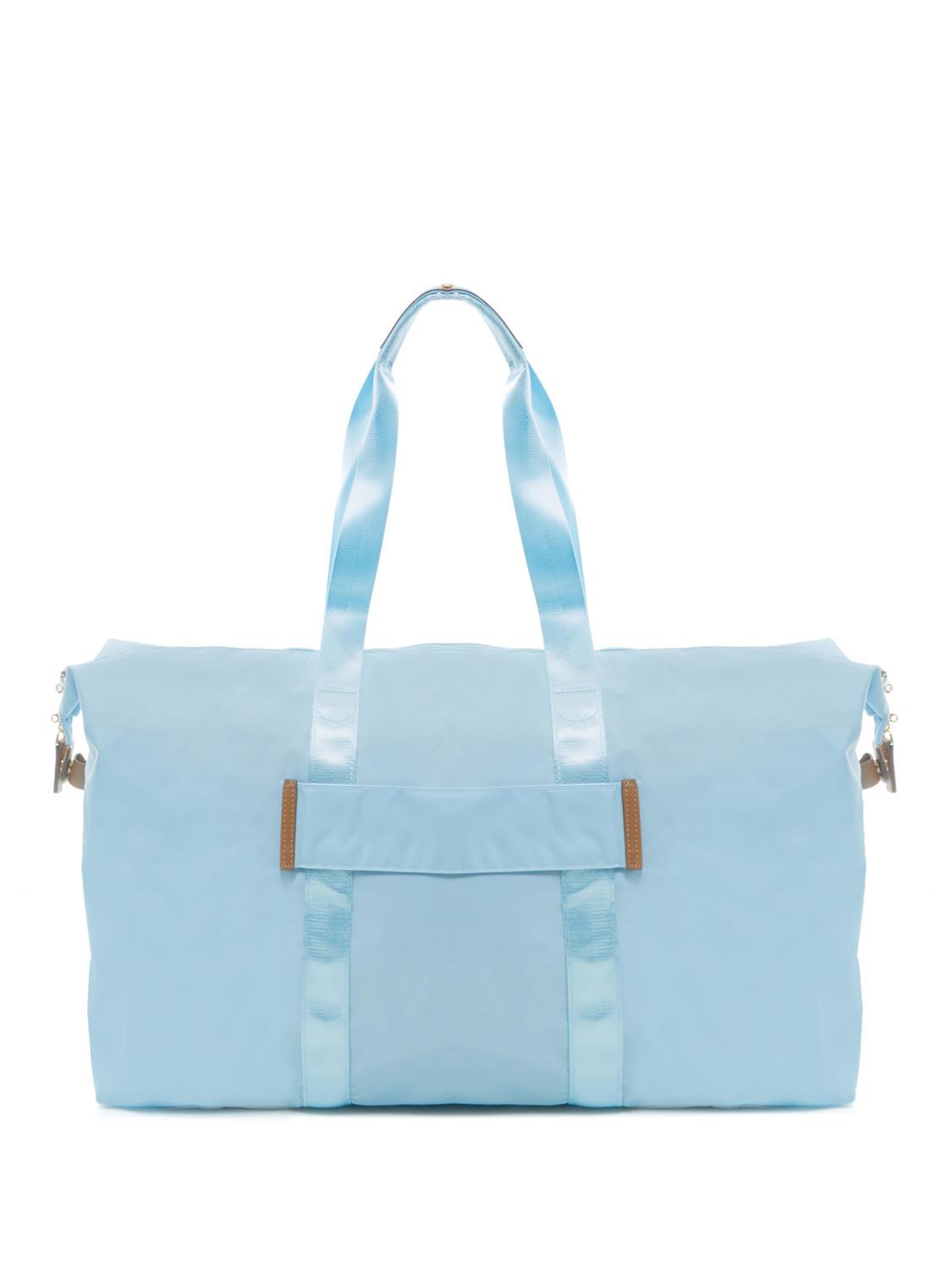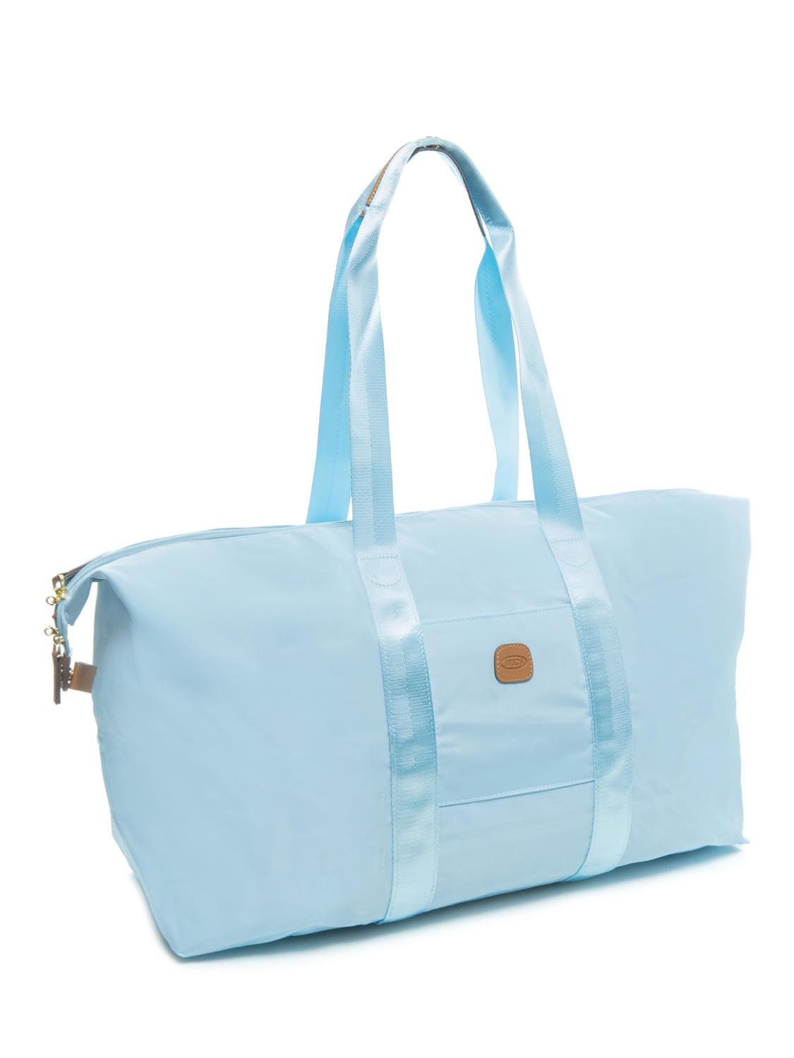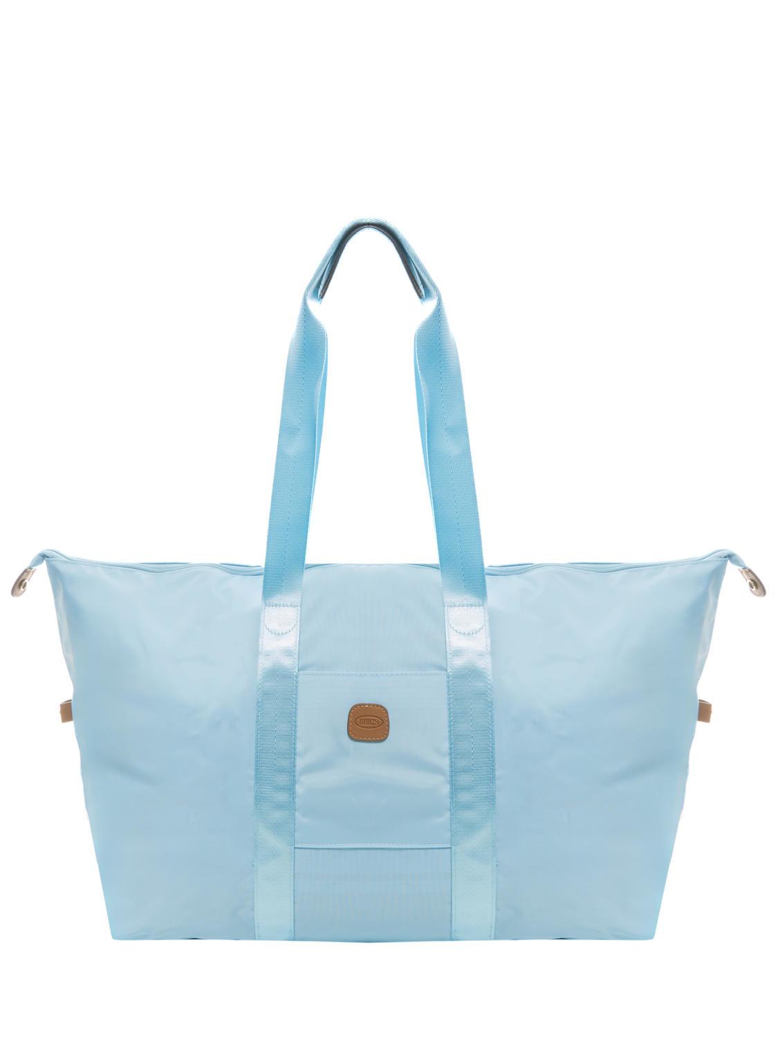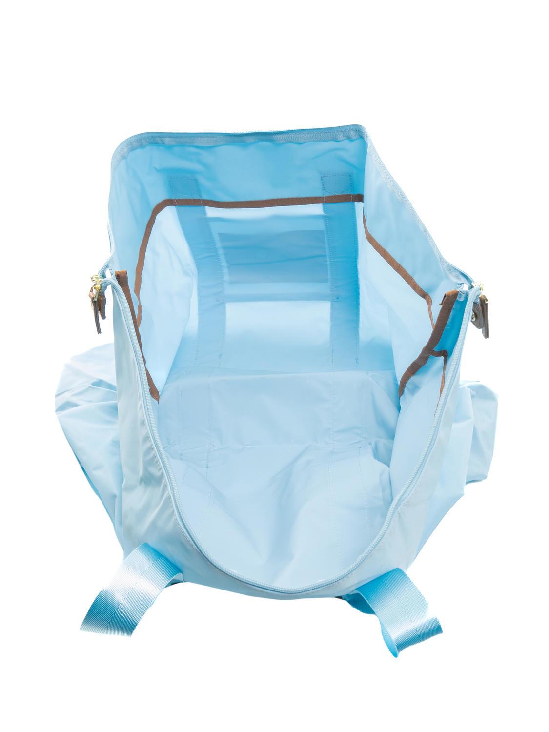 - Bolsa de viaje plegable de nylon con ribete de piel.