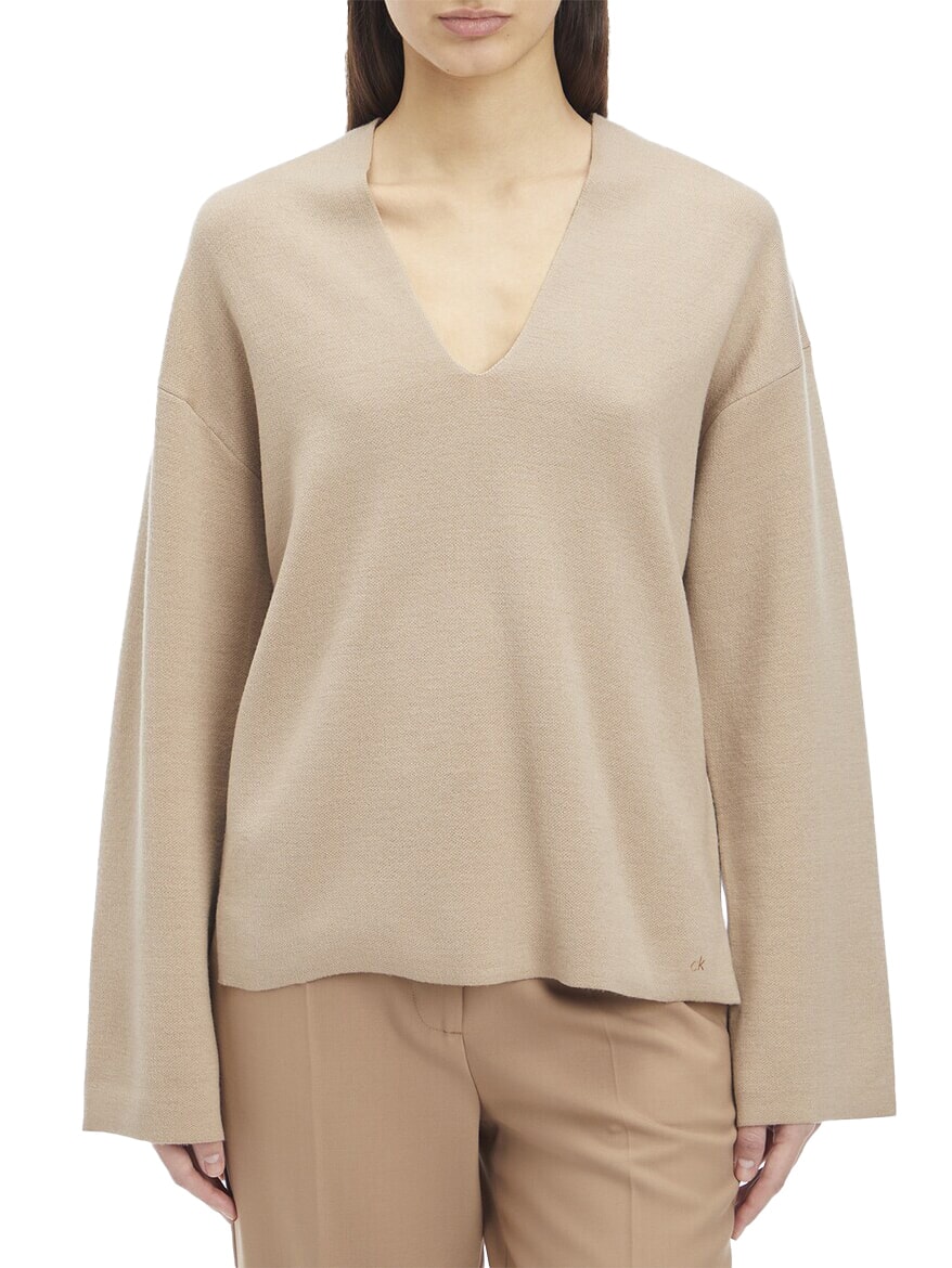 CK Suéter de cuello en V con mangas anchas