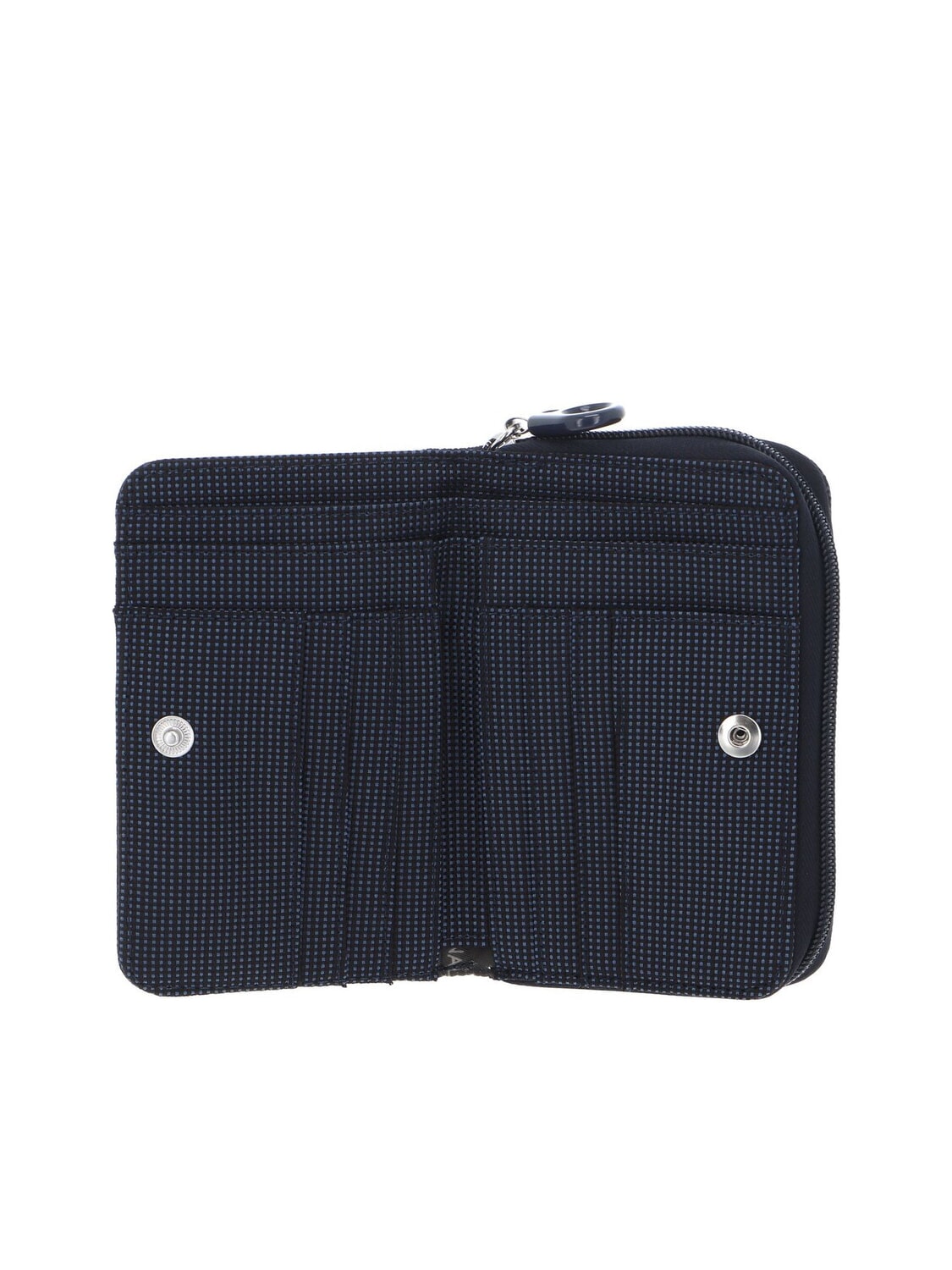 - Cartera compacta de poliéster con efecto iridiscente.