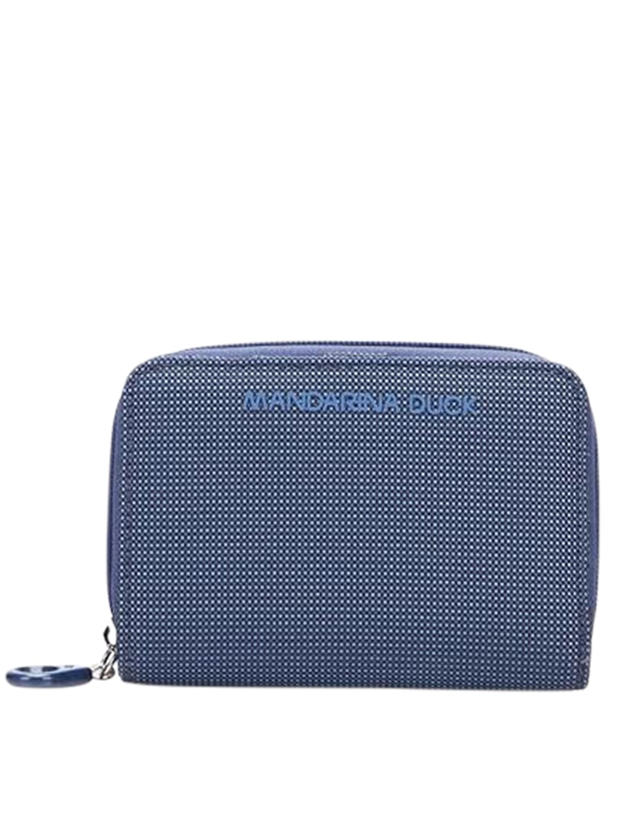 - Cartera compacta de poliéster con efecto iridiscente.