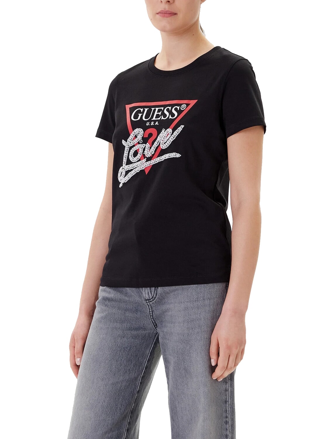 PEARLS LOVE TRIANGLE Camiseta con estampado y aplicaciones