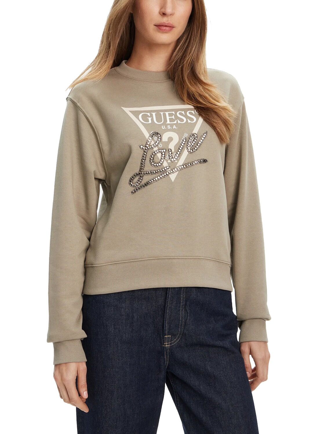 STUDDED LOVE Sudadera de cuello redondo con estampado de tachuelas