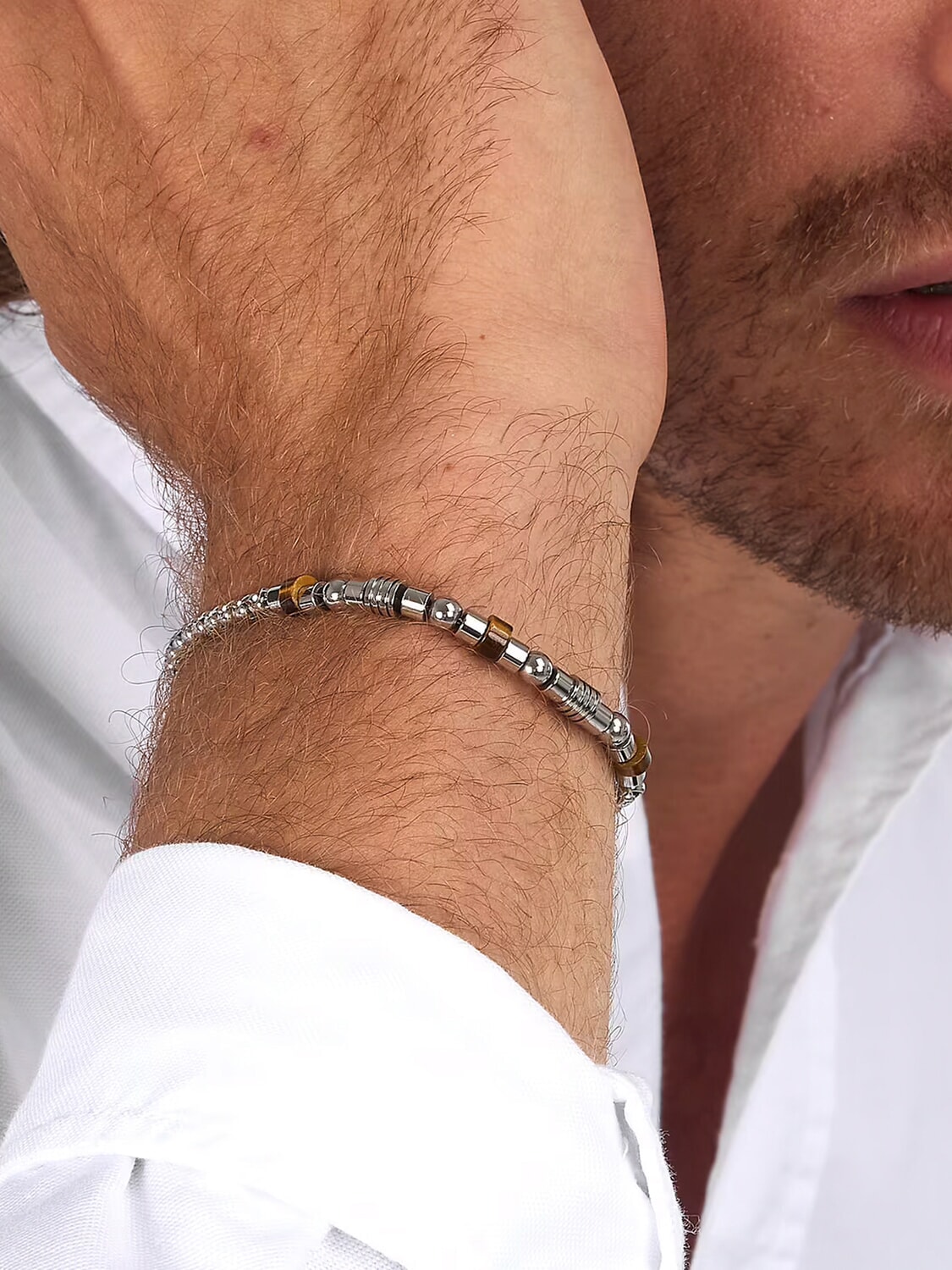 PIETRE Pulsera de acero y piedras preciosas