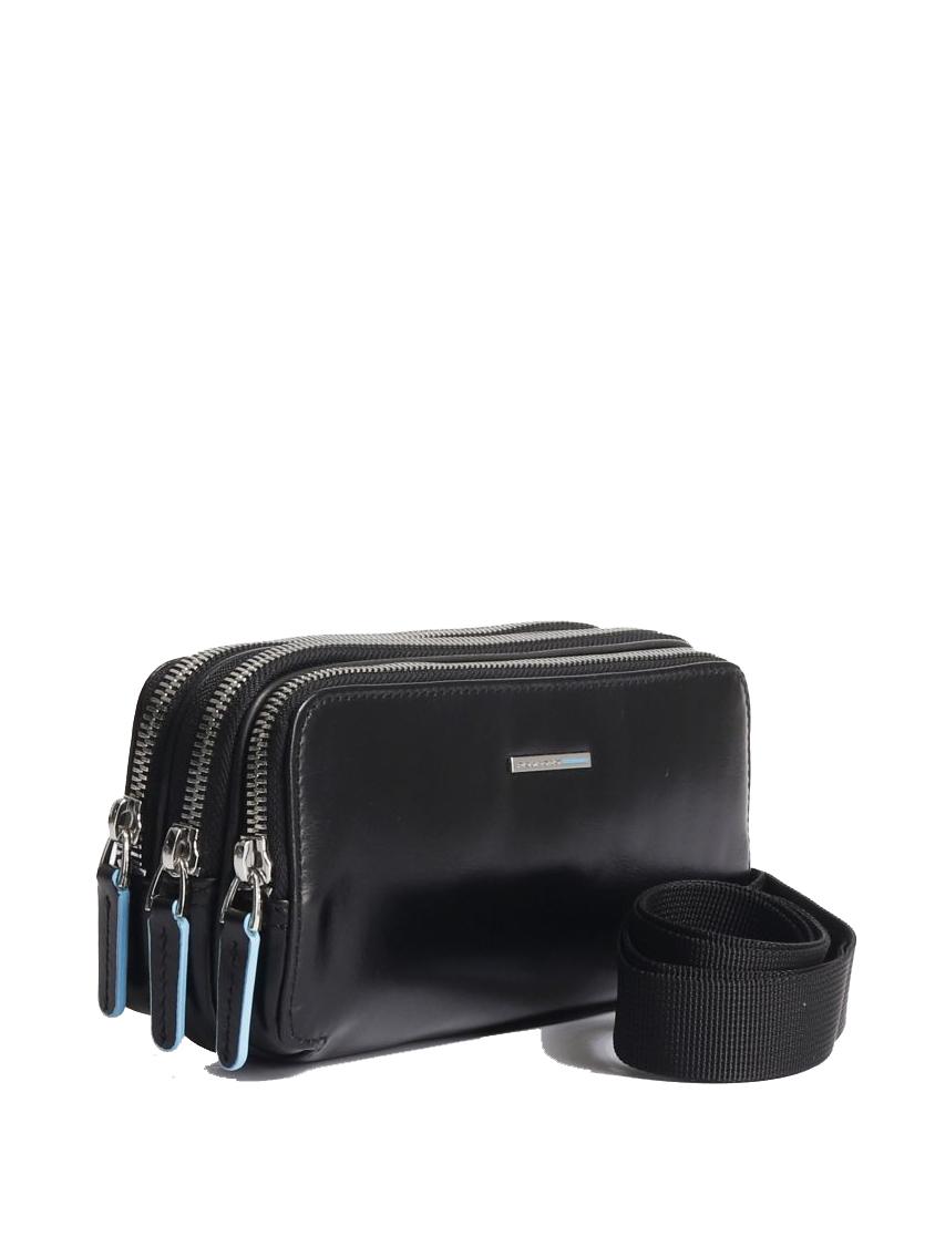 BLUE SQUARE Mini bolso de piel con 3 cremalleras.