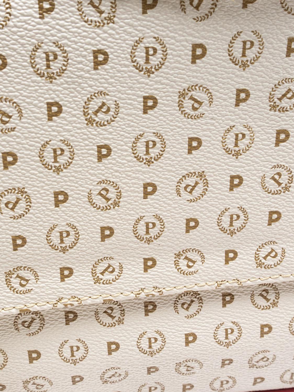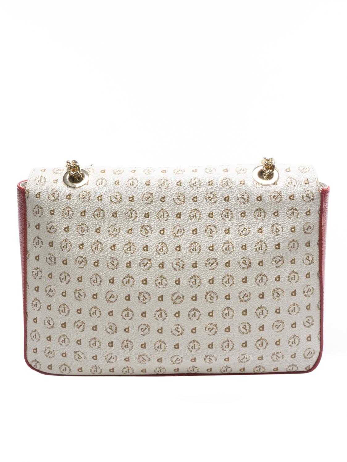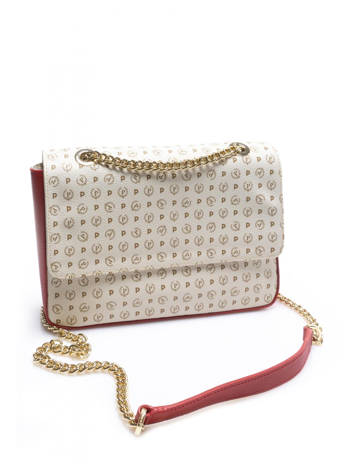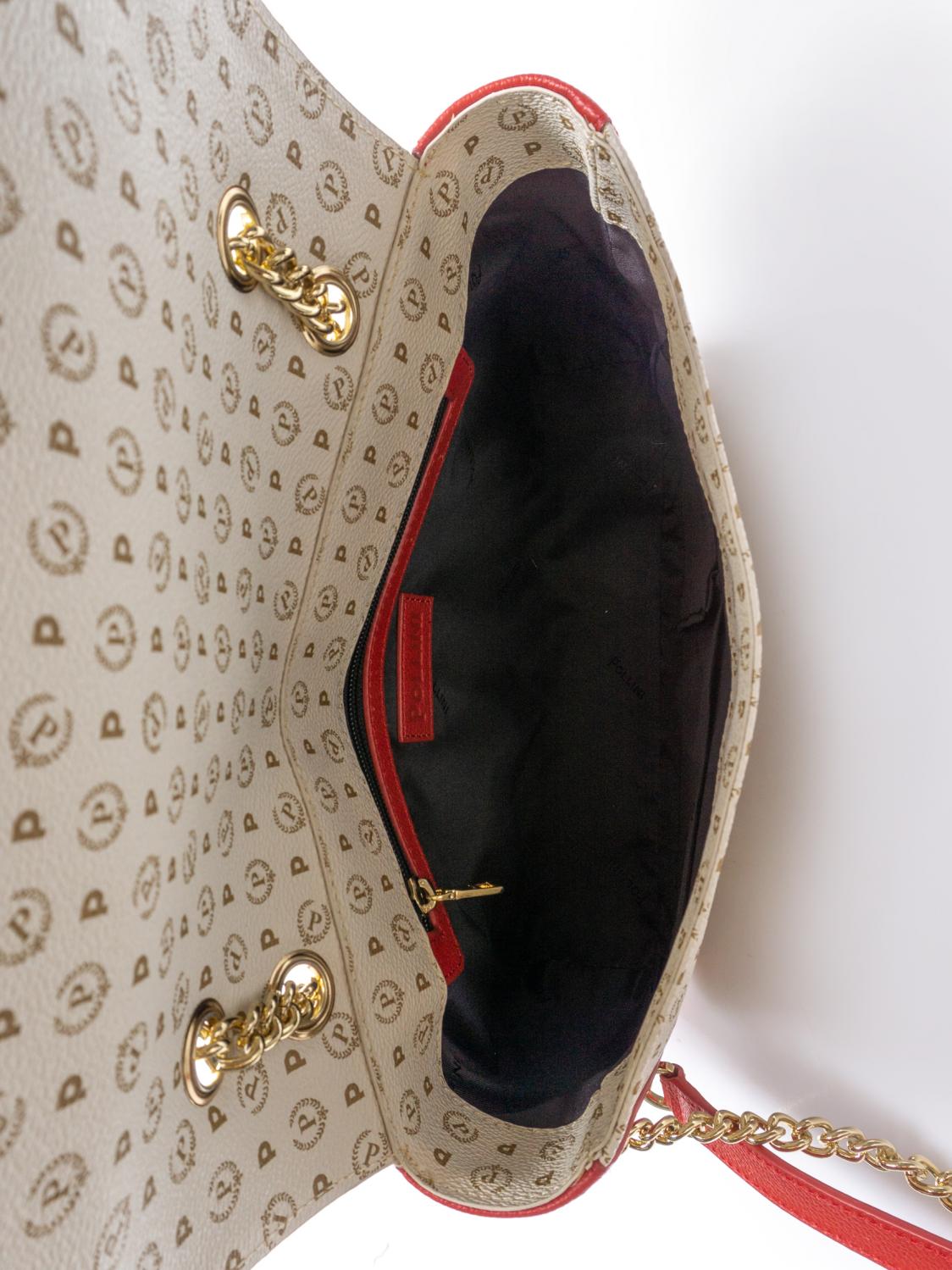 - Bolso de hombro de PVC con inserciones de cuero en contraste.