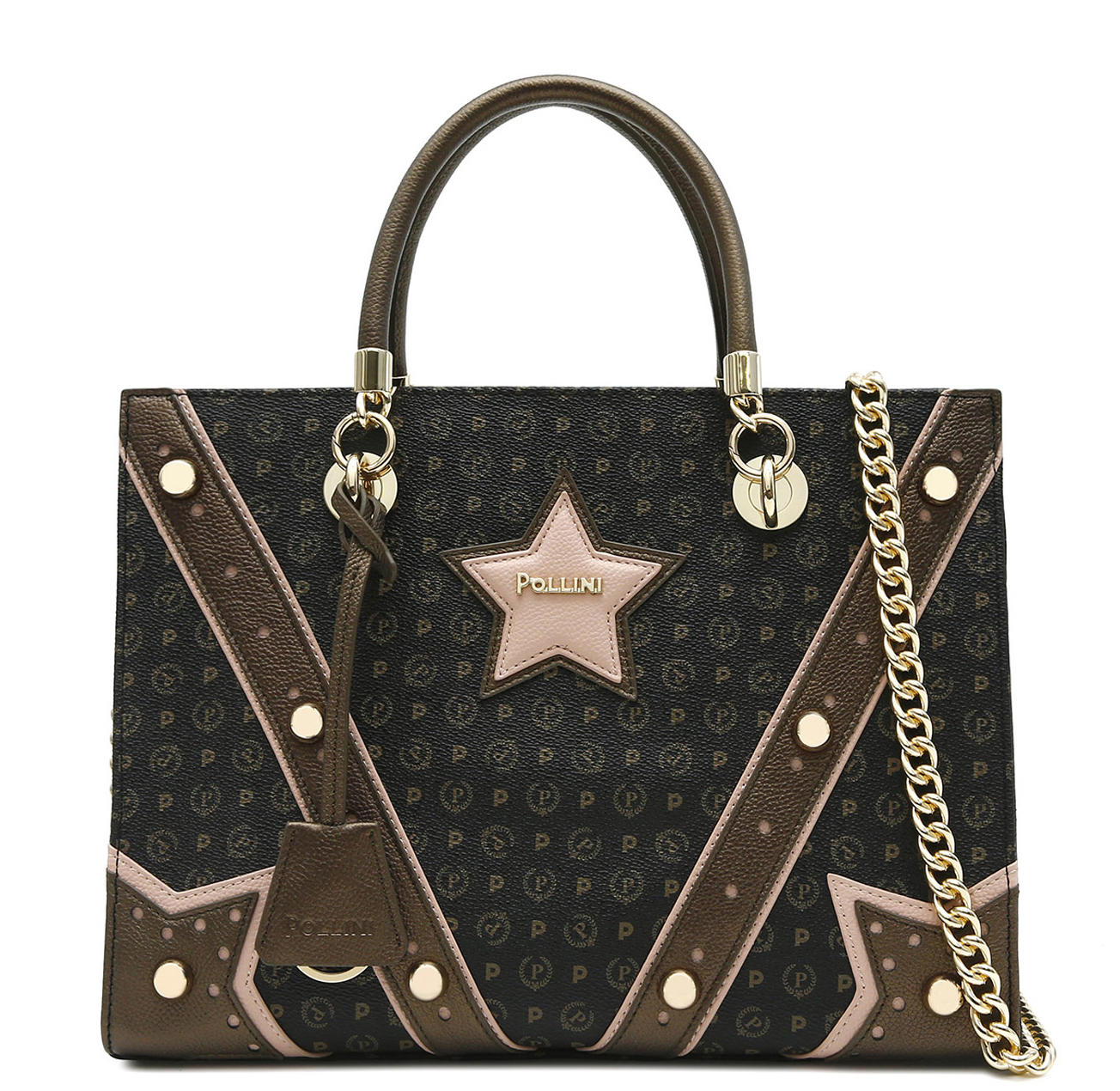 - Dos asas planas con cadena intercambiable con dos asas tubulares de cuero
