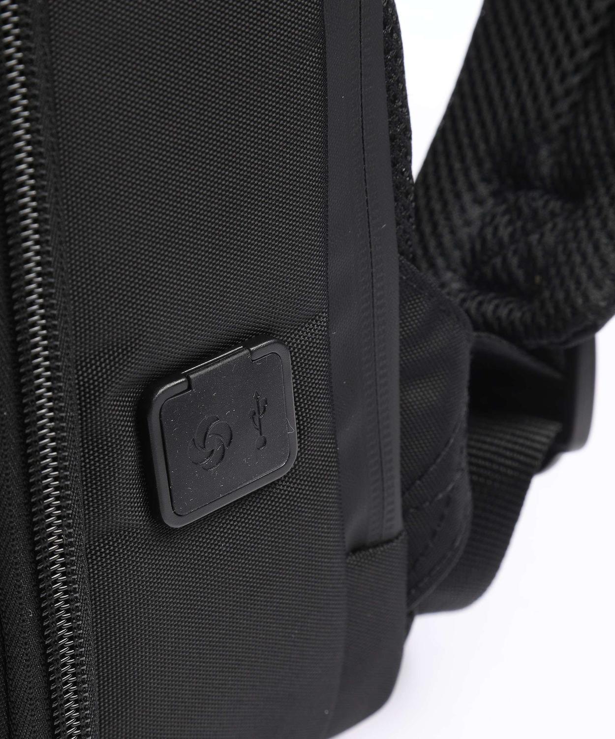 - Sistema Easy Pass: permite gestionar los cables del cargador que, cruzando los distintos compartimentos de la bolsa, permiten cargar dispositivos electrónicos sin sacarlos de la bolsa.