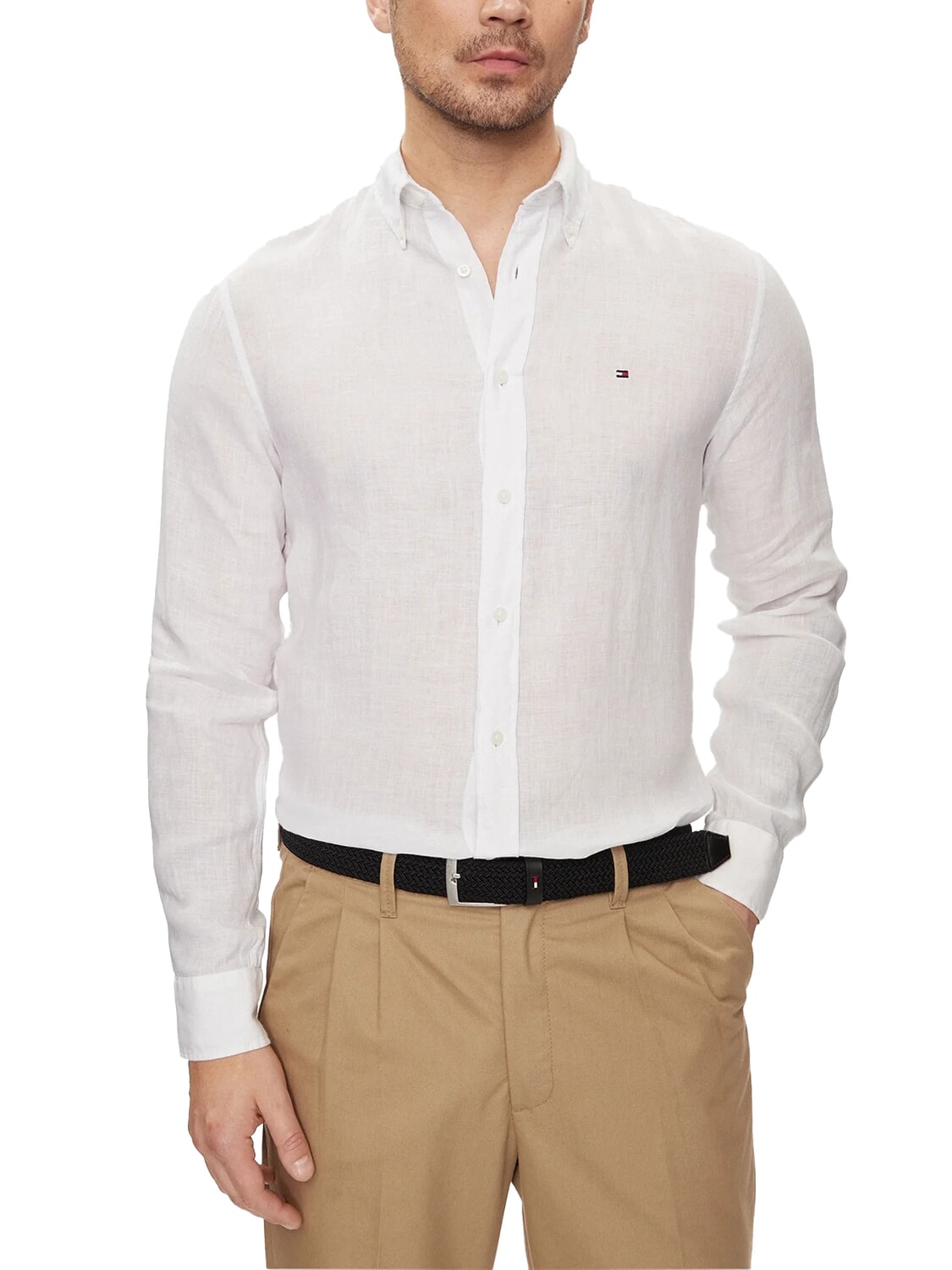 TH Camisa de lino de manga larga de corte regular
