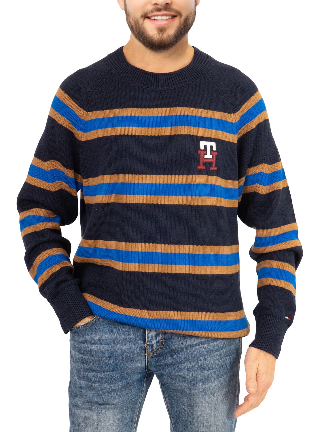 TH Suéter de algodón de cuello redondo con bordado del logo.